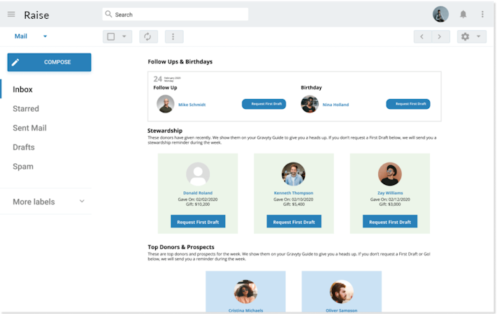 Raise is a cloud-based donation management solution, which helps educational institutions and non-profit organizations handle donor engagement, fundraising, client communications, and more. The solution offers several features such as artificial intelligence (AI), travel management, donor journeys, personalized email drafts, interaction tracking, and data synchronization. Raise also facilitates third-party integration with various platforms including Salesforce, Abila, Tessitura Network, Raiser's Edge NXT, and more.