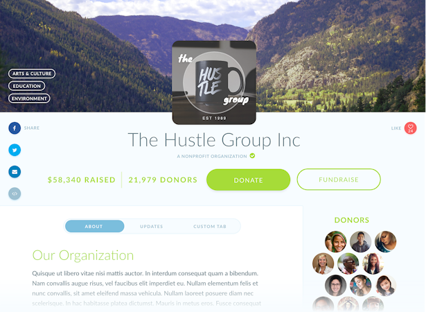 Mightycause’s branded donation pages can be customized to match the look and feel of any nonprofit organization, and can include custom description tabs to help draw attention to specific information. Users can highlight fundraisers, events, and teams in a collection dedicated to featuring the best and most recent fundraising efforts. Organizations have the option to proudly show off their donors, or keep them discrete. Donation pages can be connected to social network platforms to display Instagram feeds or Facebook albums automatically.