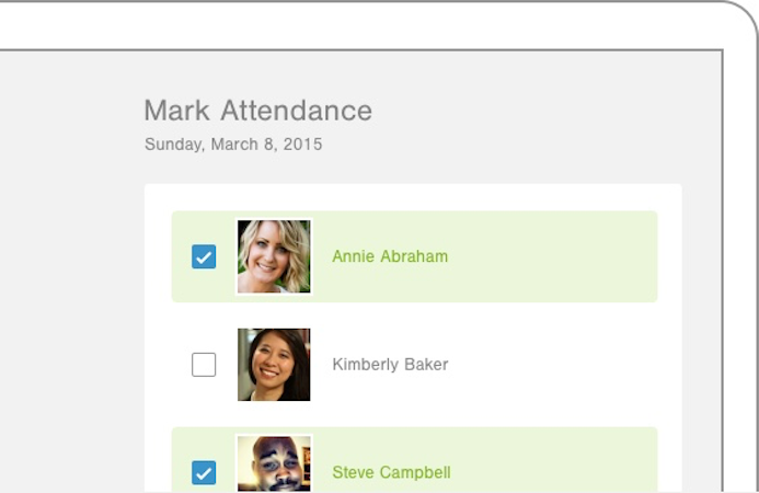 Staff can centrally manage check-in kiosks, help check people in, see attendance in real time, and run attendance reports, and for group events, group leaders can take attendance at the beginning of, during, or after meetings.