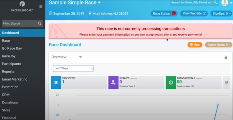 RunSignUp is a donation management software that helps businesses manage processes related to race events, such as fundraisers, marketing, registrations, waivers, and more on a centralized platform. The promotion module enables staff members to create event webpages with information, such as custom menus, google maps locations, sponsor placements, and external URLs.