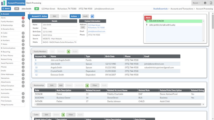 The PCI DSS-compliant platform allows teams to manage pledges, process payments via credit card, and handle journal entries. Employees can manage child sponsorship programs and generate coupon codes to handle inventory across multiple warehouses on a unified interface. StudioEnterprise enables managers to invite donors, plan capacity across venues, and handle registration processes to organize events. Supervisors can also gain insights into contact information, communication details, donation history, and events attended via donor profiles.