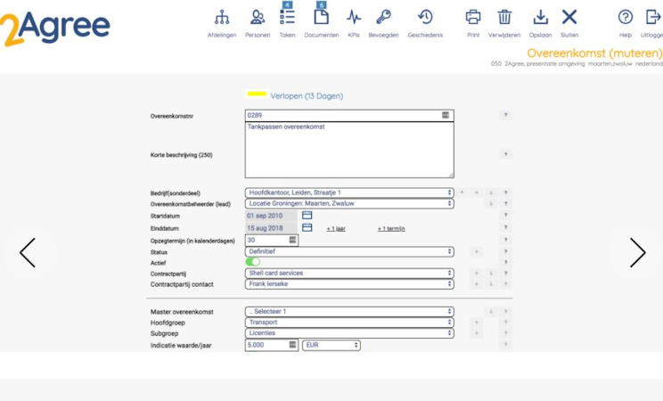 2Agree is a SaaS solution for the management and monitoring of contracts across all business departments. It provides administrators with full control over all contracts within their organization. The software can send notifications via e-mail when deadlines or notice periods are approaching.