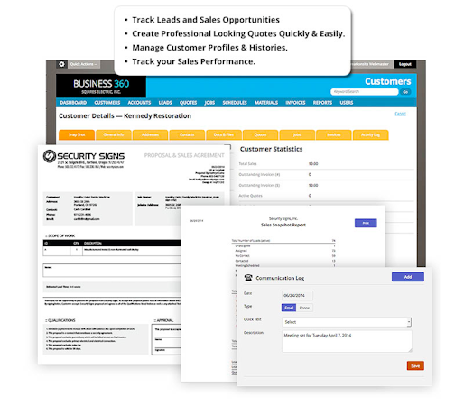 360e offers sales and customer relationship management capabilities, which allow users to handle all processes such as lead tracking, quote creation, sales funnels, statistics, and fetching multiple jobsite and billing addresses on a unified platform. The job management solution provides dashboards for enterprises to track assignments in progress. Managers can view employee schedules through multi-screen visualization methods by day, week and month as well as by employee and job, optimizing productivity and work efficiency.