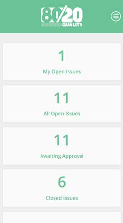 80/20 Quality allows supervisors to track issue status based on multiple categories, including open, awaiting approval, and closed. Managers can receive in-app alerts when issues are identified, allowing them to create and implement corrective plans for fixing, scraping or returning non-conforming materials. It also lets staff members maintain a log of all activities to identify issue trends and improvement opportunities.