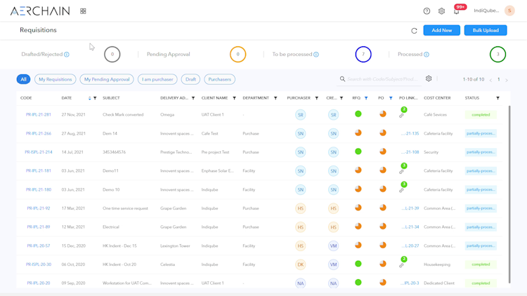 Aerchain’s user interface