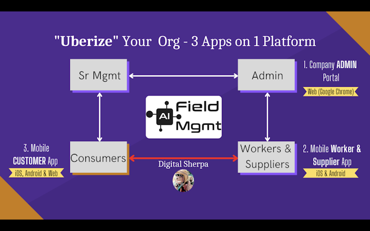- "UBERize" your Operations: Customers can make real-time requests for ANY Product or Service and AI-FM will direct it to the best suited field worker instantly. AI-FM's Trademarked Algorithm ensures accuracy, speed and customizability