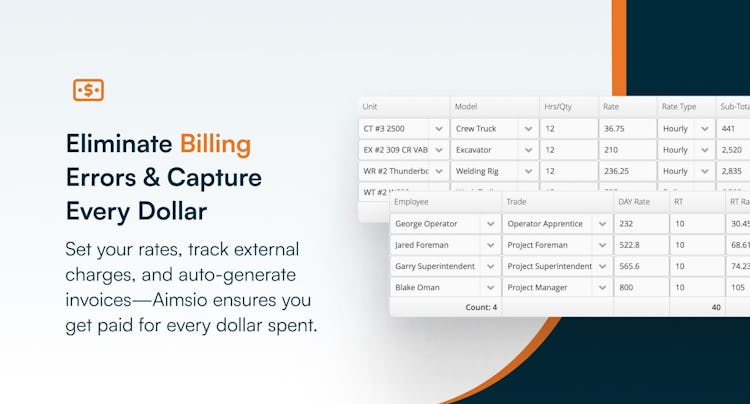 Aimsio organizes field operations by centralizing everything—field tickets, timesheets, price books, progress reports, and invoices—in one easy-to-use platform. Smart dispatching with drag-and-drop job cards simplifies crew and equipment assignments, while real-time tracking keeps projects on budget and on time. Invoicing is fast, accurate, and flexible—whether built from scratch, a single ticket, or multiple entries—eliminating errors and manual rework.