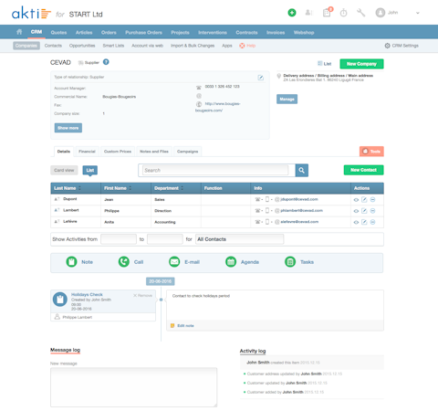 Akti supports CRM functions, as well as the writing and management of quotes and invoices. The application has also been developed to help with the management of orders, articles, stock, expenses, on-site interventions, projects, marketing and e-commerce sites. Akti imposes no limit on the number of invoices, quotes or documents created.