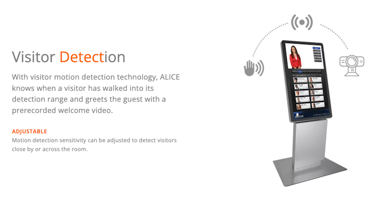 The all-in-one visitor management solution aims to help organizations looking for a technological solution to manage and process visitors to their desired destination upon arrival. Built with enterprise organizations in mind, ALICE Receptionist includes features to greet and register visitors, alert and connect visitors with employees via phone or video calls, and provide interactive information to assist visitors when they arrive at a building or office. Due to out-of-the-box integrations with third-party tools such as Microsoft Active Directory, Skype for Business, Office 365, and any SIP-based Voice over IP Phone (VoIP) system, ALICE Receptionist is positioned to seamlessly integrate into most enterprise IT workflows.