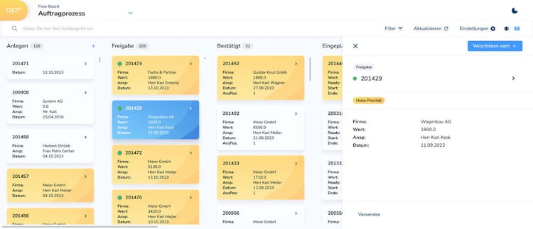 Rollenbasierte Prozessführung mit individuell anpassbaren Flow Boards. Reduziert Komplexität, erhöht die Transparenz und steigert die Prozessgeschwindigkeit im Tagesgeschäft.