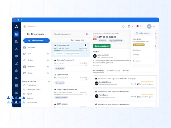 Autenti is an e-signature eco-system platform for the approval of documents and signing contracts. We transform traditional b2b and b2c transactions with e-commerce solutions through convenient and secure ways, bringing more sales with one-click e-signatures, BPA solutions and remote identity verification.
