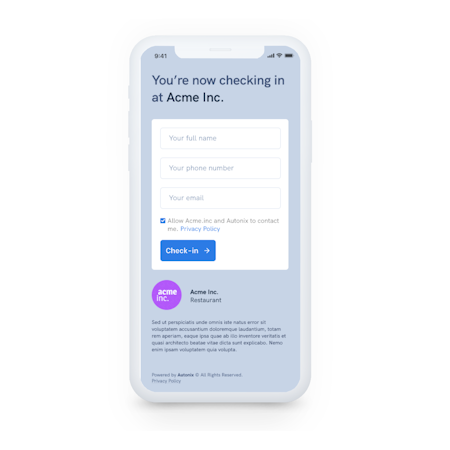 Autonix is an easy to implement contactless check-in system that reveals hidden opportunities with a powerful dashboard reporting. The touchless check-in options include dynamic trackable QR Codes and unique web URLs. Use our provided check-in templates or customize welcome and thank you messages. Use the real-time dashboard to spot trends such as busiest/slowest days or hours, add multiple locations to view aggregated data. Search and filter raw opt-in visit data to create powerful contact and marketing lists. A must-have solution for any business.