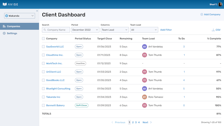 Avise is a project management software that provides automation, collaboration, and centralization of the team's processes. By combining close checklists, amortization & depreciation schedules, flux analysis, and consolidation with client GL-level data, Avise aligns the work of the team across clients within one system, increasing capacity to deliver on-time, premium services. Administrators can:
