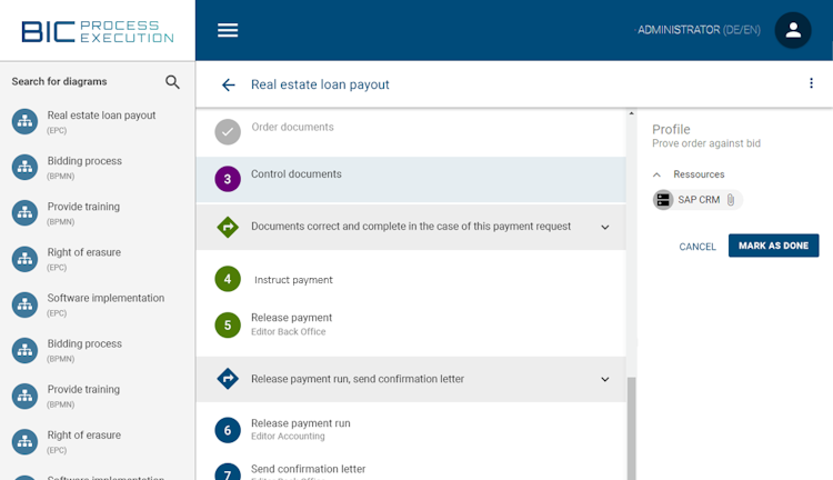 BIC Process Execution is the easiest way to automate your processes. Simply capture your work steps graphically and BIC Process Execution transforms your process documentation into digital workflows. Thanks to its no code and low code approach, employees can automate their processes at the click of a mouse and without any programming effort. By using RPA, repetitive tasks can be executed by so-called software bots, reducing manual activities to a minimum. Keep track of your process performance and benefit from extensive analyses of important KPIs, which are represented in the form of powerful dashboards.