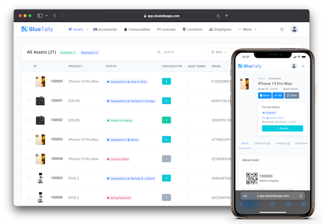 BlueTally is a fully cloud-based asset management software that is intuitive and user friendly with features like Intune, Jamf and Kandji integrations, Azure AD and Okta support, and a flexible API. The software offers users tools such as assigning assets, asset checkin/checkouts. changelog history, asset audit and maintenance and more. «Where is this?» Get an overview of where your assets are, and how many assets are at a location. «Who has this?» Find which employee that has the asset you're looking for, and who had it beforehand. «How many are left?» Easily see how many assets are ready for checkout, out for repair or currently in use.