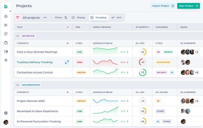 - Pilot a portfolio of projects. Filter, group and visualize portfolios.