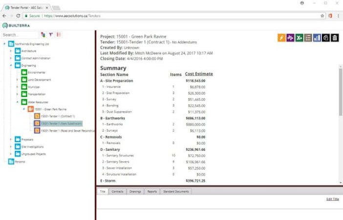 Builterra is a contract administration software designed to assist businesses in construction, transportation, engineering, and other industries with bid preparation, field inspection, cost estimating payment reporting, and more from within a unified platform. Users can capture and upload model and CAD-based properties for objects to create pay item tables and compare bid items based on section or cost estimates through color-coded charts.
