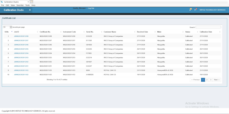 Calibration Studio is a cloud-based calibration management software designed to help businesses manage inspections, receive or send instruments, and print certificates for various gauges, instruments, and devices. The platform includes metadata management functionality, which enables administrators to configure measurement methodology, customer details, instrument category or subcategory, units, and certificate notes or remarks.