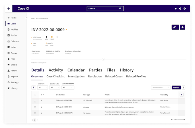 Case IQ is the leading investigative case management software solution for ethics and compliance, human resources, fraud, and corporate security functions within small to large organizations. The platform provides unrivaled case intake capabilities, workflow configuration, automation, and advanced analytics that are essential for increasing the capacity, accuracy, and efficiency of workplace investigation teams.