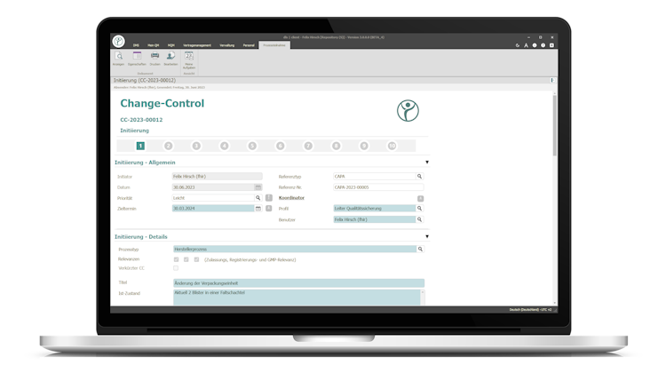 Our software offers comprehensive digital workflows for optimising production-related quality management (QM) processes, particularly in the area of change control (CC). These integrated solutions completely replace the previous paper-based process. They enable CC processes to be systematically categorised by type and support the evaluation of each change control with regard to approval, registration or GMP relevance. This is done via a dynamic CC form that ensures effective planning, processing and approval of actions.