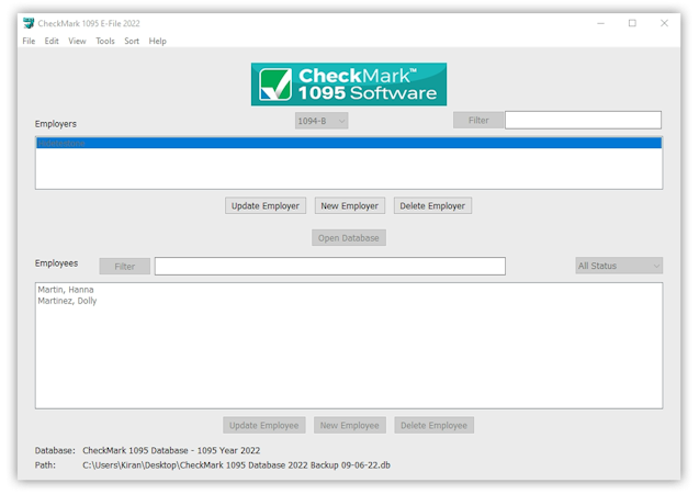 CheckMark 1095 software is a professional-grade solution that allows businesses to report and file or transmit ACA (Affordable Care Act) requirements of health care coverage provided to employees and the IRS.