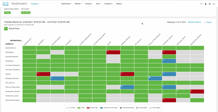 The application enables users to identify attacks through alerts with contexts such as user name, device type, location, timestamp, and application. IT administrators can analyze encrypted traffic for potential threats and compliance violations without decryption. Cisco Secure Network Analytics lets professionals detect unknown malware, data exfiltration, or policy violations. Network segmentation helps enterprises establish an added layer of defence and secure internal devices.