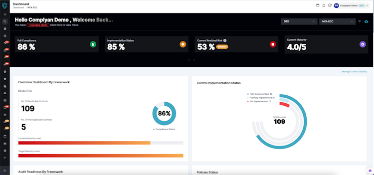 Complyan has integrated regional and international information security and data protection regulations, as well as global frameworks. The platform takes a unified approach to governance, risk, and compliance, allowing users to identify compliance gaps, risks related to management and technical controls, cyber threats, risk exposure, and compliance posture.