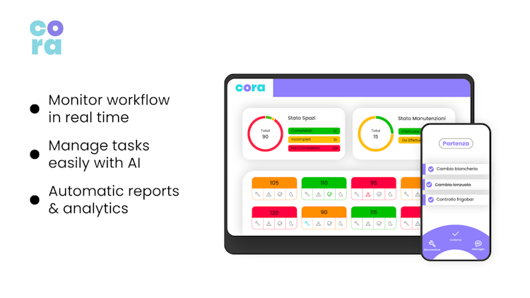 Cora is a hospitality operations management platform that uses artificial intelligence to optimize daily workflows, enhance internal collaboration and improve service quality within hotel and similar environments. The solution functions through a cloud based dashboard and a native mobile application to support real time coordination and task execution across multiple departments and locations. The design of the platform addresses the workflow challenges faced by operations teams in hospitality settings ranging from hotels and resorts to property management and facility management organizations.