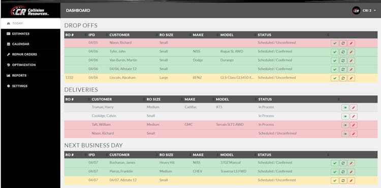 At Collision Resources, our team help collision repair centers meet and exceed their production goals by reaching and maintaining a consistent workflow using our CR Auto Scheduler® - Production software. Our AI powered platform combines Lean Six Sigma principles, our team’s extensive expertise in the auto body industry, and the latest technology to streamline scheduling and balance workflow at your auto body shop.
