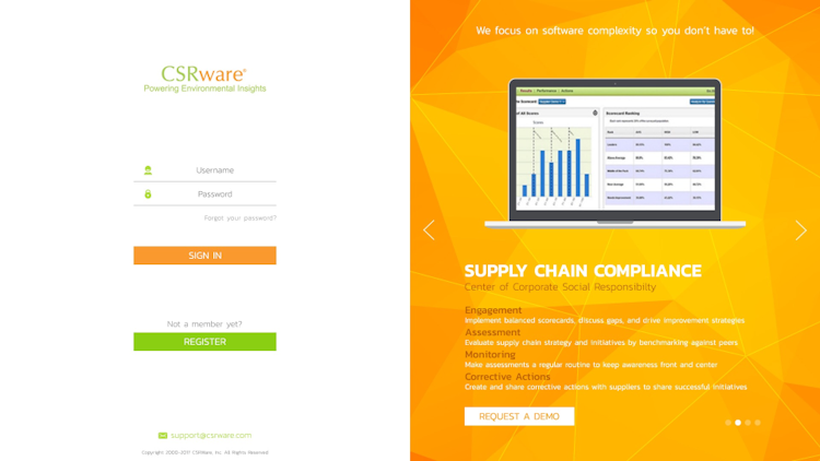 CSRware Responsible Supply Chain is a cloud-based platform for supply chain risk mitigation that helps organizations manage performance, be audit ready, mitigate risk, and ensure business continuity. The solution enables users to collect, assess, analyze and manage risk associated with vendor management, and helps companies understand opportunities for improvement in complex supply chains.