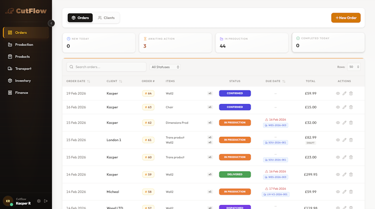 CutFlow is a cloud-based manufacturing resource planning and workshop management solution designed for bespoke make-to-order manufacturers. The platform helps businesses centralize order management, production scheduling, inventory tracking, and delivery logistics within a unified operating system that replaces fragmented spreadsheet-based workflows. CutFlow serves small to medium-sized UK manufacturers across specialized sectors such as bespoke kitchen manufacturing, joinery workshops, fitted furniture production, shopfitting operations, wardrobe manufacturing, bathroom vanity production, and custom cabinetry. The software enables managers to address the operational complexities of custom manufacturing environments in which each order requires unique specifications, material calculations, and tailored production workflows.