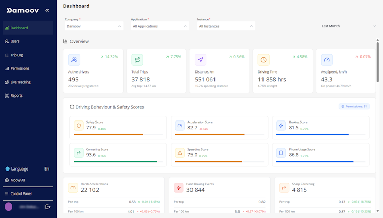 Damoov is a modular mobile telematics infrastructure for building tracking, fleet, and safe-driving functionality inside 3rd-party apps. It turns a smartphone into a telematics device using on-device sensors, and provides the SDK + cloud data pipeline + APIs needed to collect trips, detect driving events, and deliver analytics at scale.