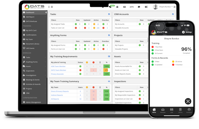 At DATS, we help organizations go digital with a fully integrated management system designed for continuous improvement. Whether you’re managing safety, training, or both, DATS replaces paper, spreadsheets, and disconnected tools with one powerful, streamlined platform. With 34+ powerful modules, we offer unmatched breadth—without the 7-figure cost or years-long implementation. From incident tracking to onboarding, sign-offs to SCORM, quizzes to job progression, DATS brings serious depth, refined over 19 years of development and deep industry insight. And our legendary support? It’s in a league of its own: real-person help in 60 seconds, urgent meetings in 60 minutes, custom tutorials in 24 hours, and unlimited access to expert coaches. DATS isn’t just software—it’s a full support system.