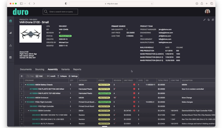 Duro is a cloud-native, AI-enabled PLM + PDM platform built for modern hardware companies to get products to market three times faster. With instant onboarding and an industry-leading UI, Duro simplifies integrations with best-in-class tools through its API-first architecture.