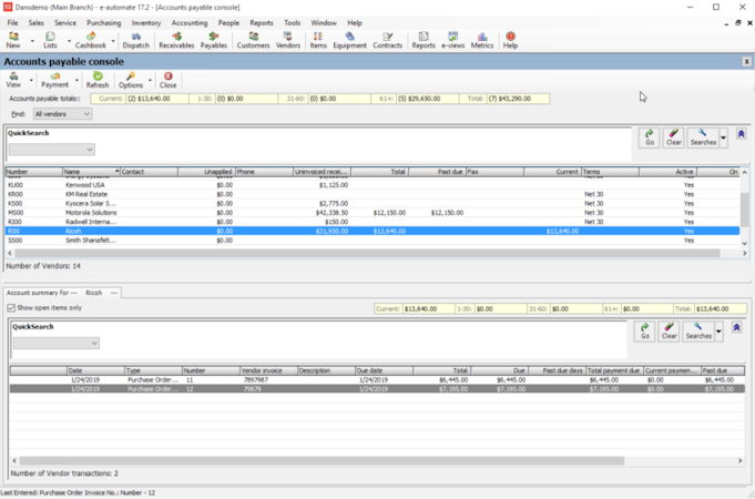 e-automate is a cloud-based business management solution for companies that support, sell, and service technology products, such as office equipment, banking equipment, and two-way wireless. The platform covers accounting, contracts, purchasing, inventory, sales, customer service, and more.