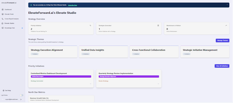 ElevateForward.ai is a cloud-based strategy and execution platform that leverages artificial intelligence for diagnostic insights and planning tools. It supports growth-stage organizations in sectors such as SaaS and technology, professional services and consulting, healthcare, financial services, manufacturing and supply chain, retail and eCommerce, and nonprofit and education. The platform is designed to address strategic fragmentation that can arise between leadership vision and team-level execution by unifying diagnostics, strategy design and operational workflows within a single environment.