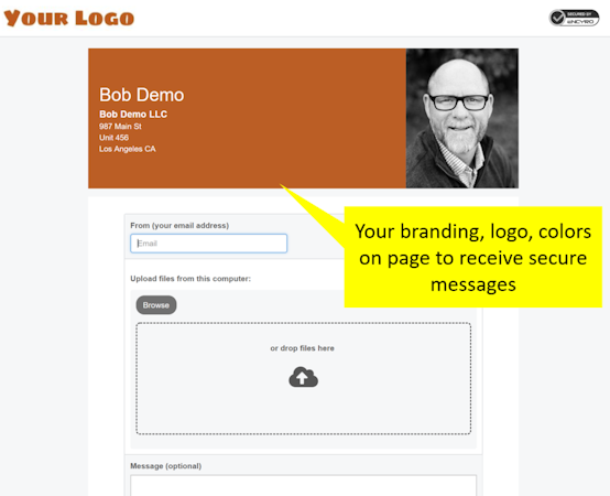 (2) Receive securely via a custom branded upload page.