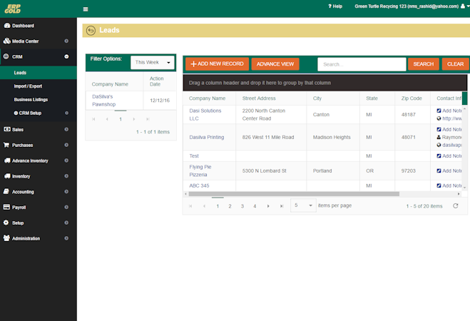 The application comes with a CRM module, which helps supervisors assign leads to team members, schedule follow-ups via a calendar, and manage customer billing and shipping details. ERP Gold's project management feature enables managers to create and execute projects, as well as set up corrective actions for associated issues. Accountants can use the solution to track expenses, generate a balance sheet, and manage journal entries. Plus, the solution helps marketers run email campaigns and create progress reports.