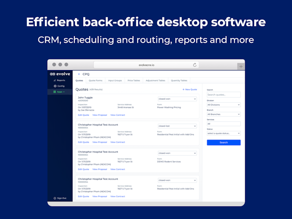 Evolve provides an API, which enables businesses to integrate the platform with various third-party applications, such as SalesRabbit, Twilio, SendGrid, and more. The software is designed for pest management, lawn & tree, mechanical, and commercial & home services industries.