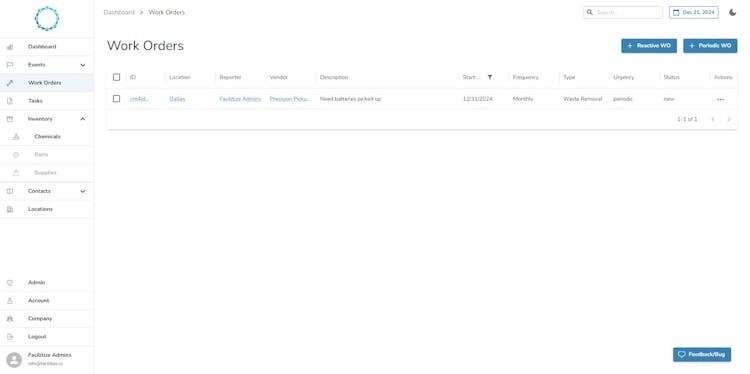 Facilitize is a cloud-based facility management platform designed to streamline operations, enhance productivity, and ensure environmental compliance. From work order tracking to vendor management, Facilitize empowers facility and operations teams with tools to optimize daily workflows.