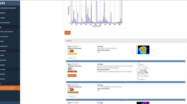 Felix allows inspectors or operators to record and import surveys with information about quantitative condition assessment indices such as oil analysis results, temperature, and vibration levels, among others.