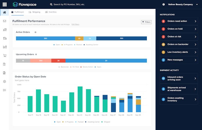 Designed for modern brands, the Flowspace platform unifies order management (OMS), inventory management (IMS), network optimization, EDI, and proprietary warehouse management (WMS) technology into a single, centralized system. Seamless API integrations connect directly with leading ecommerce platforms and marketplaces—including Shopify, Amazon, and Walmart—ensuring smooth data flow across every channel. Brands can route orders intelligently, manage distributed inventory across multiple warehouse locations, and monitor network performance in real time.