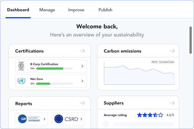 Futureproof is a cloud-based AI-powered by sustainability software that helps companies report ESG (from CSRD, CSDD, GRI and more), manage carbon emissions, audit suppliers, achieve certifications and so much more.