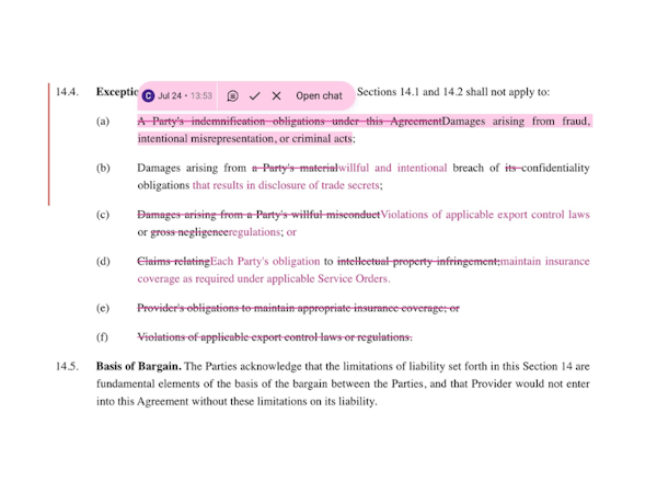 At the heart of Genie is a powerful combination of AI-assisted legal workflows and open-source legal infrastructure. Genie empowers users to operate independently with natural language tools that draft, review, and negotiate contracts - while giving legal teams oversight via transparent editing and audit logs.