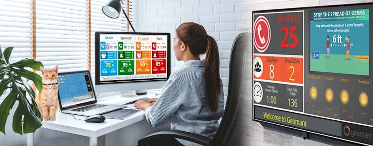 Geomant Wallboard provides a visual representation of real-time and historical metrics and can be extended beyond the contact center to optimize internal communications. Display and track Key Performance Indicators with customizable wallboards and dashboards in the center, at home, or remotely.