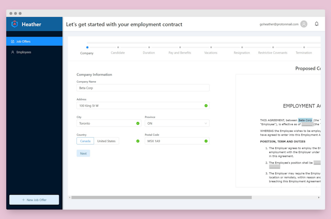 Unlike generic AI tools, goHeather is trained by legal professionals and understands context. It identifies which party you represent (e.g., buyer or seller, employer or employee), determines the relevant jurisdiction, and flags risky clauses with clear explanations you can actually act on—no legal training needed.