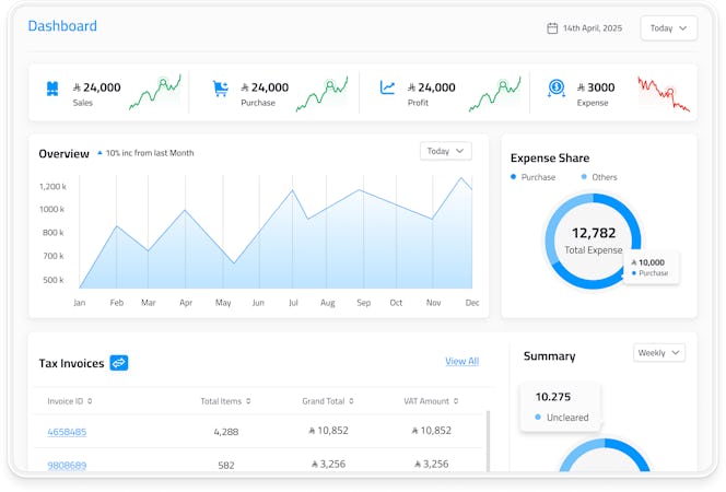 It offers an affordable, scalable, bilingual and user-friendly cloud-based solution that simplifies business management in the Kingdom of Saudi Arabia. Fully compliant with ZATCA Phase I and II mandates, providing automatic e-invoicing capabilities to generate, sign, and submit invoices to the Fatoora portal in XML and PDF formats with QR codes, maintaining audit-ready records.