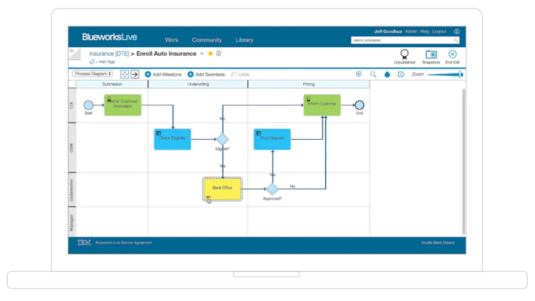 IBM Blueworks Live is a cloud-based business process mapping solution with a collaborative interface for teams across many industries. It can be used to document and analyze new and existing workflows. IBM Blueworks Live can help businesses identify and remove inefficiencies from their processes.