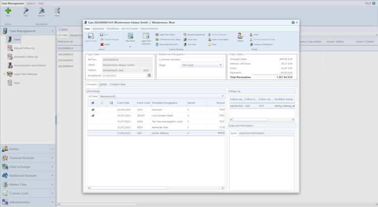 In order to ensure the optimal transparency and assignment of the parties involved in collections, a clear separation between contractual obligation and legal claim is made in IKAROS.