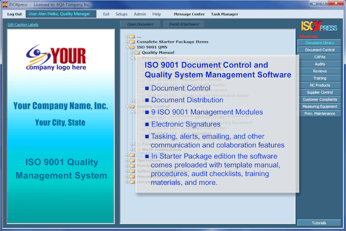 IMSXpress ISO 9001 Quality Management’s user interface